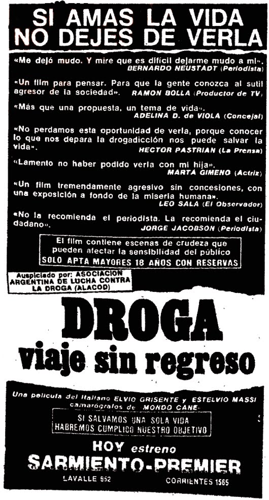 «Un film tremendamente agresivo, sin concesiones. con una exposición a fondo de la miseria humana». LEO SALA (El Observador)