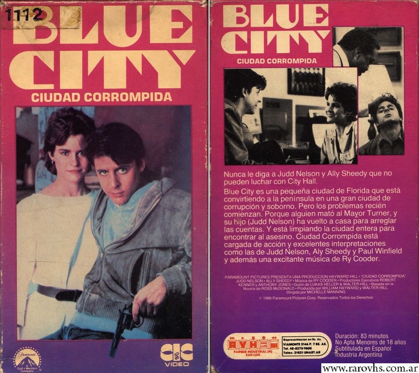 Texto de la contratapa: Nunca le diga a Judd Nelson y Ally Sheedy que no pueden luchar con City Hall. Blue City es una pequeña ciudad de Florida que está convirtiendo a la península en una gran ciudad de corrupción y soborno. Pero los problemas recién comienzan. Porque alguien mató al Mayor Turner, y su hijo (Judd Nelson) ha vuelto a casa para arreglar las cuentas. Y está limpiando la ciudad entera para encontrar al asesino. Ciudad Corrompida está cargada de acción y excelentes interpretaciones como las de Judd Nelson, Aly Sheedy y Paul Winfield y además una excitante música de Ry Cooder.PARAMOUNT PICTURES PRESENTA UNA PRODUCCION HAYWARD HILL