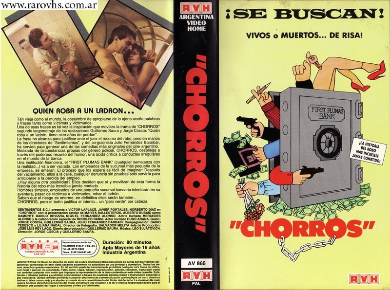 La frase no alcanza para justificar ante el juez el recurso del robo, pero en manos de los directores de «Sentimientos», y del co-guionista Julio Fernández Baraibar, ha servido para generar una de las comedias más originales del cine argentino. Matizada de circunstancias propias del género policial, CHORROS, despliega a través del poderoso recurso del humor, una ácida crítica a conductas irregulares en el mundo de la banca.
