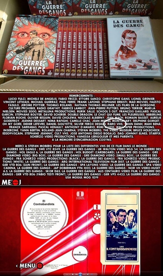 Colaboré enviando carátulas de las dos versiones de la edición nacional en VHS de Luca il contrabbandiere de Lucio Fulci para el DVD francés de lujo de The Ecstasy of Film que homenajea al VHS.