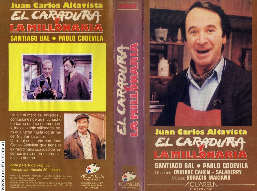 Sinopsis de la contratapa: Un sin número de enredos y confusiones de un muchacho de barrio que se enamora de una inalcanzable millonaria. pero que lucha hasta lograr hacer triunfar su amor. Otra dulce historia con Juan Carlos Altavista que tiene la extraordinaria cualidad de hacernos reir y enternecernos al mismo tiempo. Apta para todo público Tiempo aproximado 89 minutos.