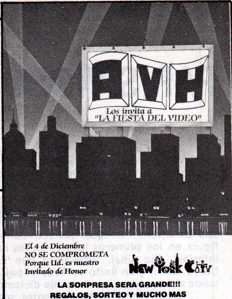 La preparación de la fiesta de Fin de Año de AVH, que se realizará el 4 de diciembre en la discotheque New York City y el lanzamiento de un novedoso videocassette, que consiste básicamente en el juego de Bingo —lotería adaptado al video, son dos de los temas de trabajo para la gente de AVH en estos días. A fin de dar adecuada divulgación a estas y otras iniciativas en la zona de Rosario, Dardo Ferrari —directivo de la compañía— viajó a Rosario a fines de octubre, organizándose en dicha ciudad una especie de miniconvención de videoclubistas.