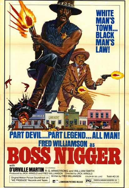 Dirigida por Jack Arnold (sí, el mismo de Creature from the Black Lagoon), Boss Nigger sigue a dos cazarrecompensas negros, Boss (Williamson) y su compinche Amos (D’Urville Martin), quienes llegan a un pueblo sin sheriff persiguiendo al forajido Jed Clayton (William Smith). Al descubrir que el lugar está a la deriva y bajo el control del corrupto alcalde Griffin (R.G. Armstrong), Boss no se anda con vueltas: se autoproclama sheriff, nombra a Amos su deputy y empieza a imponer su propia ley. ¿Las reglas? Si un blanco dice «nigger» en público, multa o cárcel. Punto.