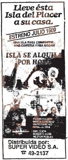 Las huestes de Super Video están planificando un lanzamiento con fuerte promoción y esperan que ‘Isla se alquila por hora’ se convierta en uno de los títulos más alquilados de la temporada, por sus características.
