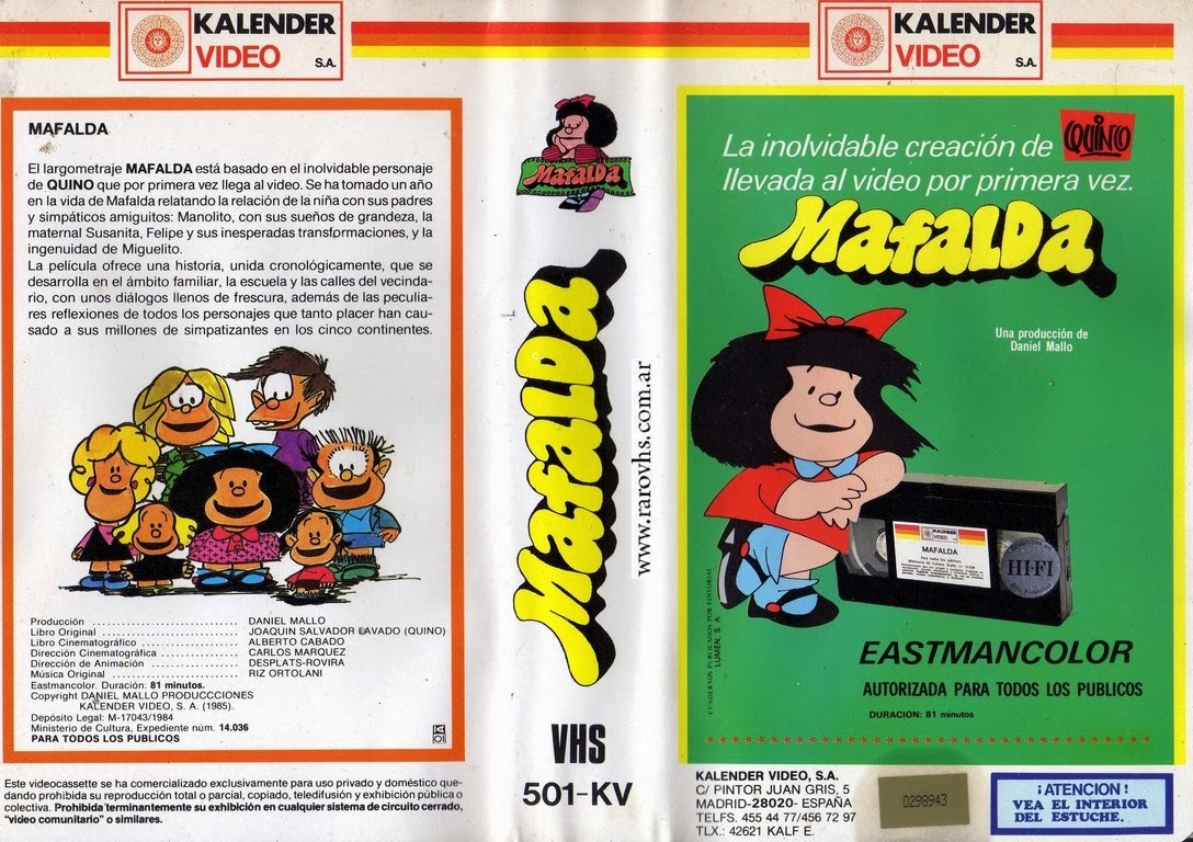 Texto de la tapa: La inolvidable creación de Quino llevada al video por primera vez.