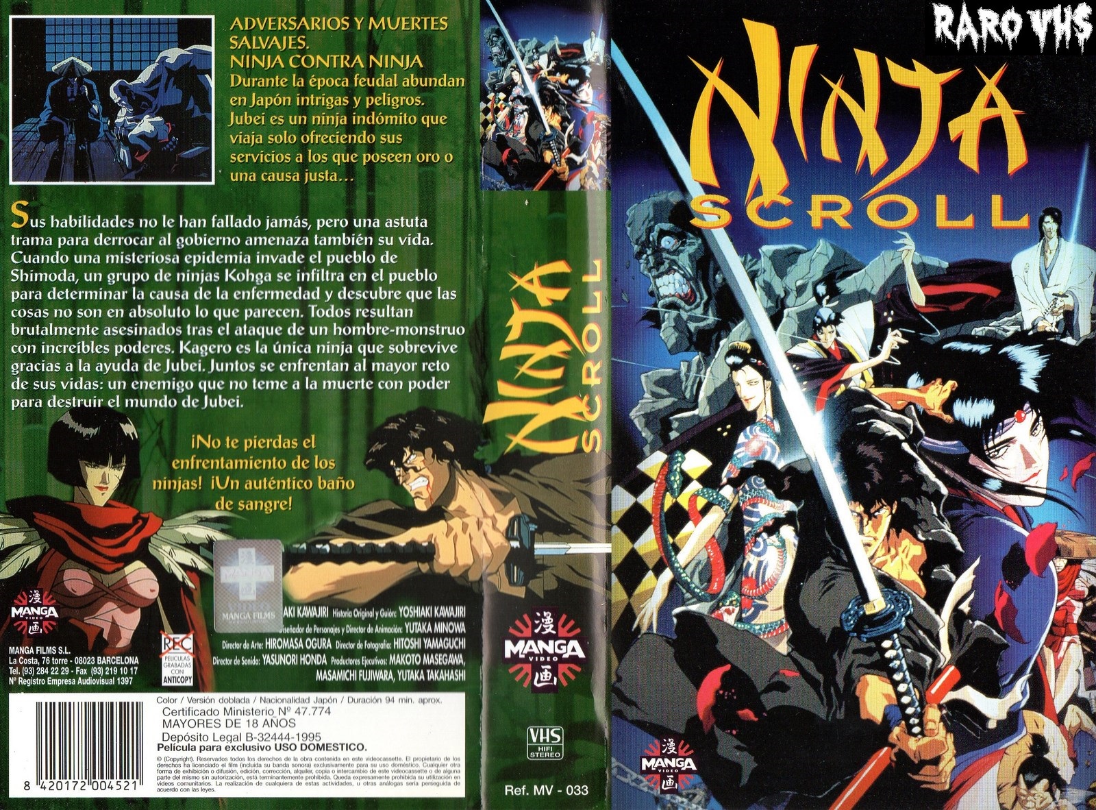 Home » Animación » Ninja Scroll (1993) Anime Ninja Scroll (1993) Anime Deja un comentario / Animación, Artes Marciales, Japon, NinjaAnimación Artes Marciales Ninja Compartir:Ninja Scroll (1993) Edición de Manga Video (España) Versión doblada en español Trailer en inglés: Entradas relacionadas:Dibujo animado: Las Aventuras de Hulk Hogan (1985)El Eternauta - Excelente versión animada de 1991El escudo del cóndor (1989) Muñecos animados argentinosEl Eternauta: 60 Segundos de Oscuridad (Excelente animación basada en la historieta)New York Ninja (1984 / 2021) en VHSPrimera pelea: Héctor Echavarría VS Randolph McClain (1989)Conan "El Rescate de Lana" (Future Boy Conan - 1978)Aventuras en la Luna (1983) de Jean ImageMordillo (Guillermo Mordillo Menéndez) - antología de humor animado en VHS (1988)Pelea completa: Héctor Echavarría VS "El Dragón" VarzéMortal Kombat: El video animado (1995)VHS escolar de EDESUR: El Viaje de la Energía (Animado)Los Pequeños Karatekas (1986) Kung-Fu KidsVideo: Publicidad animada Tic-Tac (1994)Hector Echavarría: Defensa Personal, Un Arma Mortal (1986)Llega MARVEL SUPERHEROES al videoclub (1992)Las Maravillosas Aventuras de Shazam! (1981 - Filmation)Familia TIPO - La Serie Animada Argentina que "rinde homenaje" a Los Simpsons