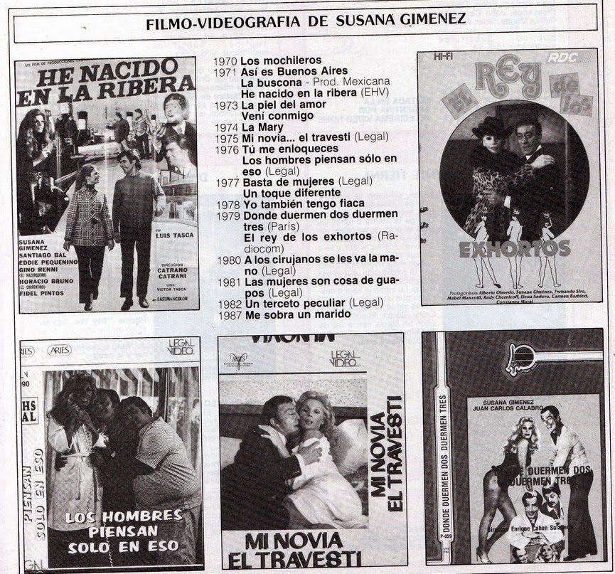 Filmo-Videografía de Susana Gimenez (hasta 1987)