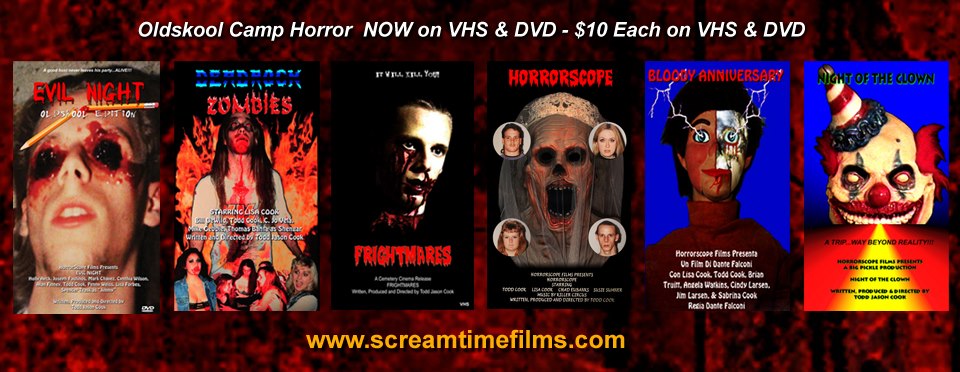 Mi agradecimiento al equipo de Screamtime Films, LLC que me ayudó a adquirir dos de sus nuevas ediciones en VHS de sus producciones terror de bajo presupuesto The Dummy y Death Metal Zombies y el DVD de Zombified (2012)